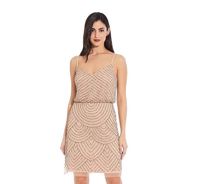 Adrianna Papell Women’s Sleeveless V-Neck Blouson Beaded Cocktail Dress