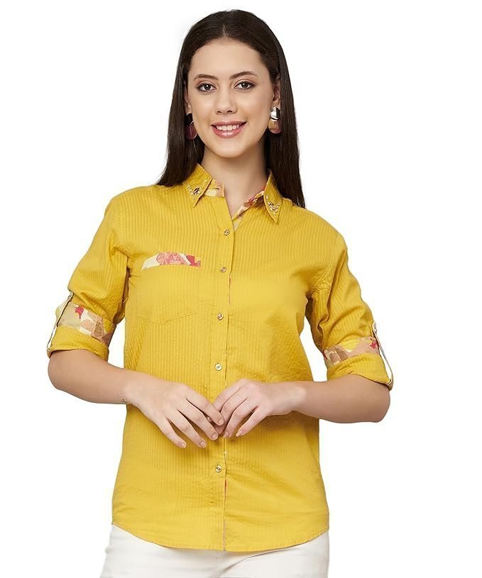 Be the first to review “FABRIC FITOOR Womens Jaipuri Pure Cotton Mustard Yellow Color Spread Collar Straight Fit Casual Shirt”