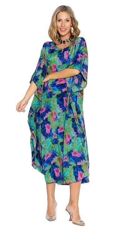 - our kaftan features a mesmerizing tie-dye print that adds a touch of bohemian elegance. The long length ensures a graceful flow, allowing you to move with ease and confidence.